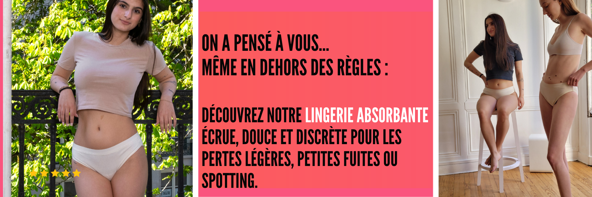 Nos culottes menstruelles écrues sont là pour vous accompagner tout au long de la journée, pendant vos nuits, vos séances de sprot, etc.